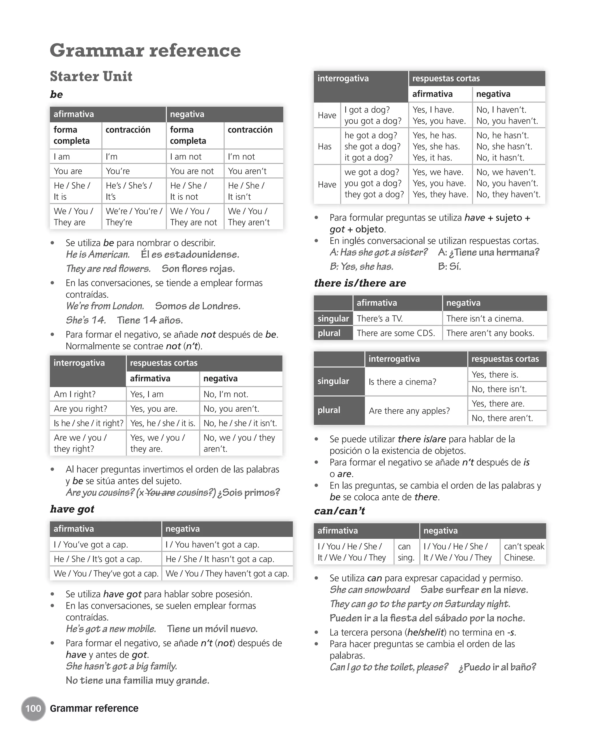 - The verbs "have got" and "there is/there are" in affirmative, negative, and question forms.