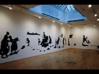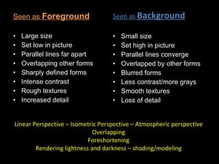 The document lists various artworks along with their creators, titles, dates, materials, and measurements, spanning different cultures and time periods. It features a range of artistic works such as paintings, sculptures, and prints, including notable artists like Ansel Adams and Edvard Munch. The collection emphasizes techniques in rendering depth, perspective, and texture, reflecting the evolution of visual representation in art.