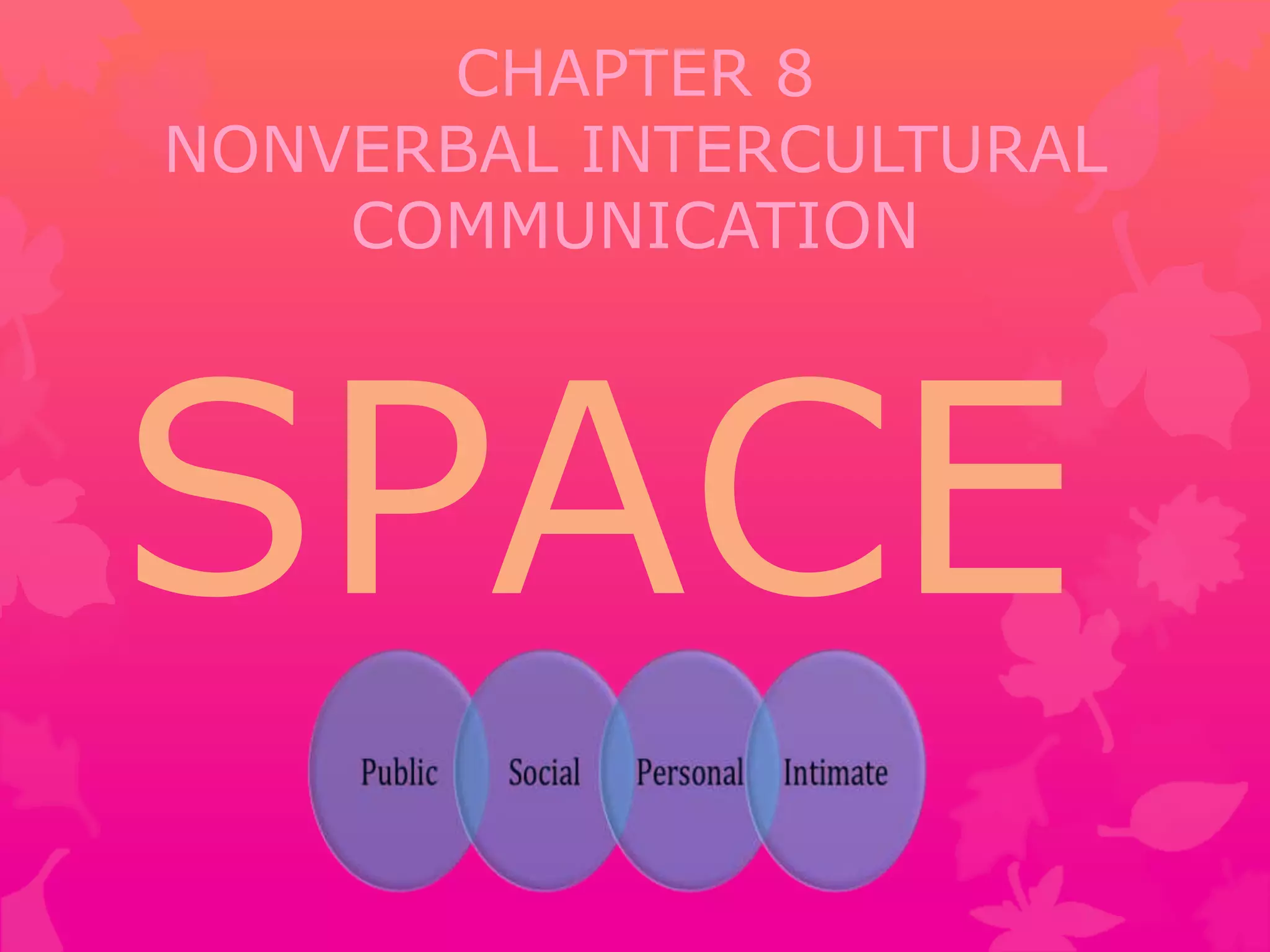 1) Personal space and use of space varies across cultures, with some cultures preferring closer physical distances in conversation and interaction than others.