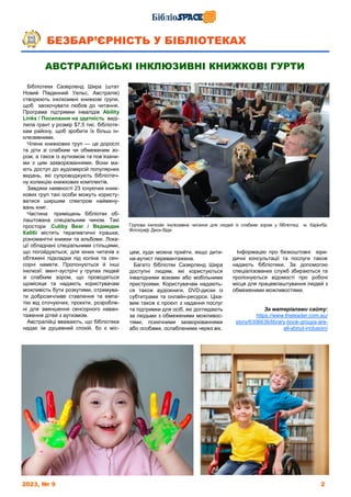 У цьогорічному випуску висвітлені інновації в бібліотечній діяльності світу: створення безбар’єрності, передусім для дітей та людей з інвалідністю, впровадження інклюзивної культури та поведінки тощо.
