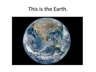 The document describes various objects in space including the Earth, moon, stars, planets and sun. The moon is made of rock, the sun is hot, and the Earth is where humans live.