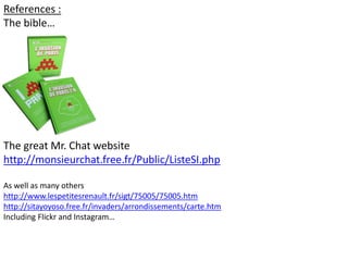 This document is a compilation by Hervé in October 2014 that lists various codes like PA and RV followed by numbers. It references street art found in Paris and includes links to websites with more information about the street art and groups on Flickr and Instagram documenting them.