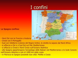 La Spagna è un paese situato nell'Europa occidentale, parte della penisola iberica, e confina con Francia, Portogallo e Gibilterra. La capitale è Madrid e il governo è una monarchia parlamentare sotto il re Felipe VI, con una popolazione che si concentra principalmente nelle aree costiere e nelle città. L'economia spagnola è diversificata, con settori come agricoltura, industria e turismo, e la cultura è caratterizzata da tradizioni come il flamenco, la corrida e una ricca cucina.