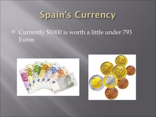 Spain has a mixed economy and imports chemicals from Germany and machinery from France while exporting foodstuffs to Germany and vehicles to France. The country has a GDP of $1.683 trillion, GDP per capita of $34,100, and an unemployment rate of 10.9%. Major companies that do business in Spain include Coca-Cola, founded in 1894, and Nike, founded in 1972.