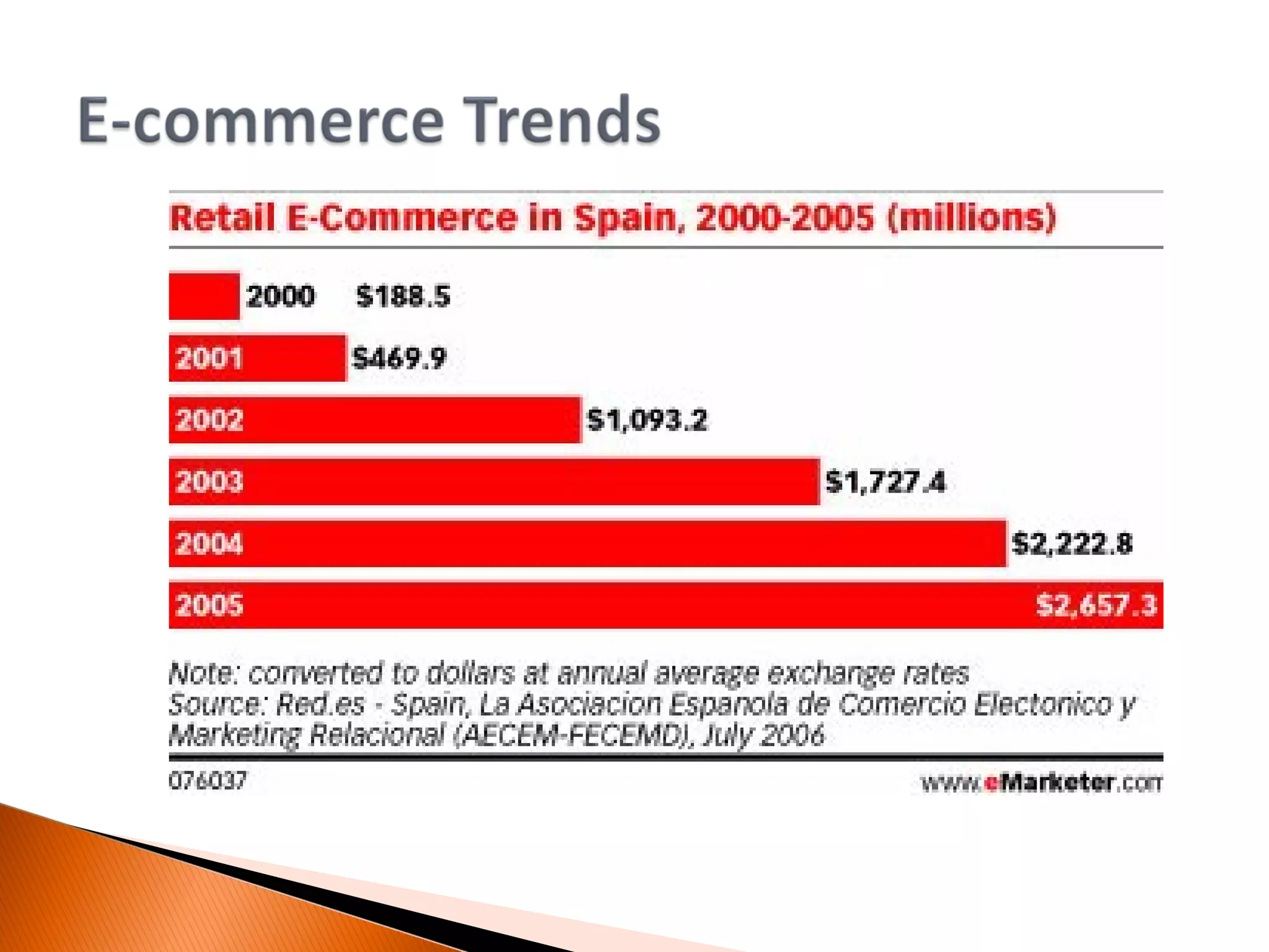 Spain has experienced significant political and economic changes over the centuries. It was once a powerful empire but lost global influence after defeats in the 19th century. The country experienced a civil war in the 1930s and dictatorship under Franco until 1975. Today Spain has a parliamentary monarchy and economy focused on services, tourism, and exports. While internet usage and e-commerce are growing, high unemployment remains a challenge.