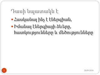 Դասի նպատակն է