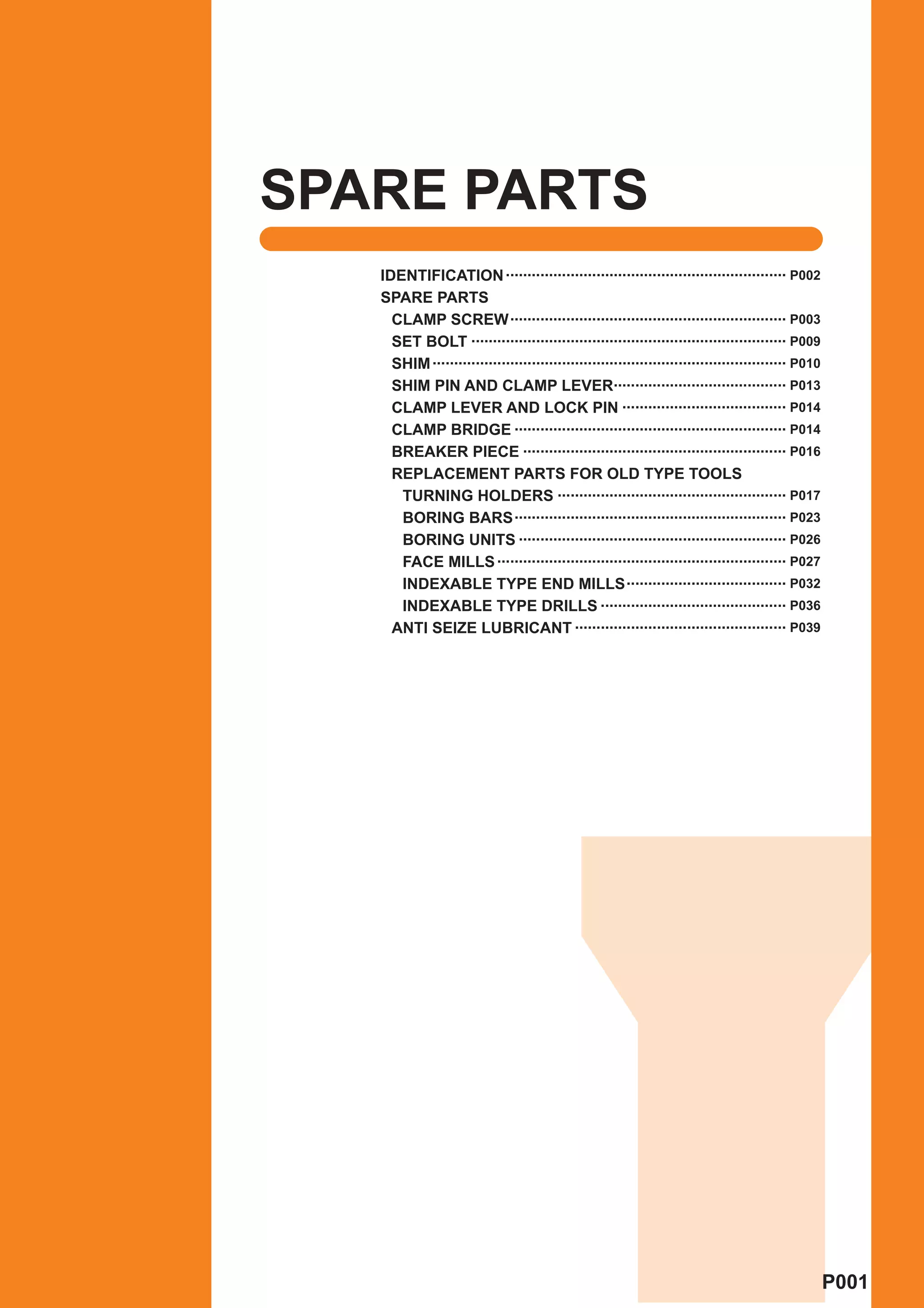 - Replacement parts for old type tools including turning holders, boring bars, boring units, face mills, indexable type end mills, indexable type drills, and anti-seize lubricant identified by their part number.