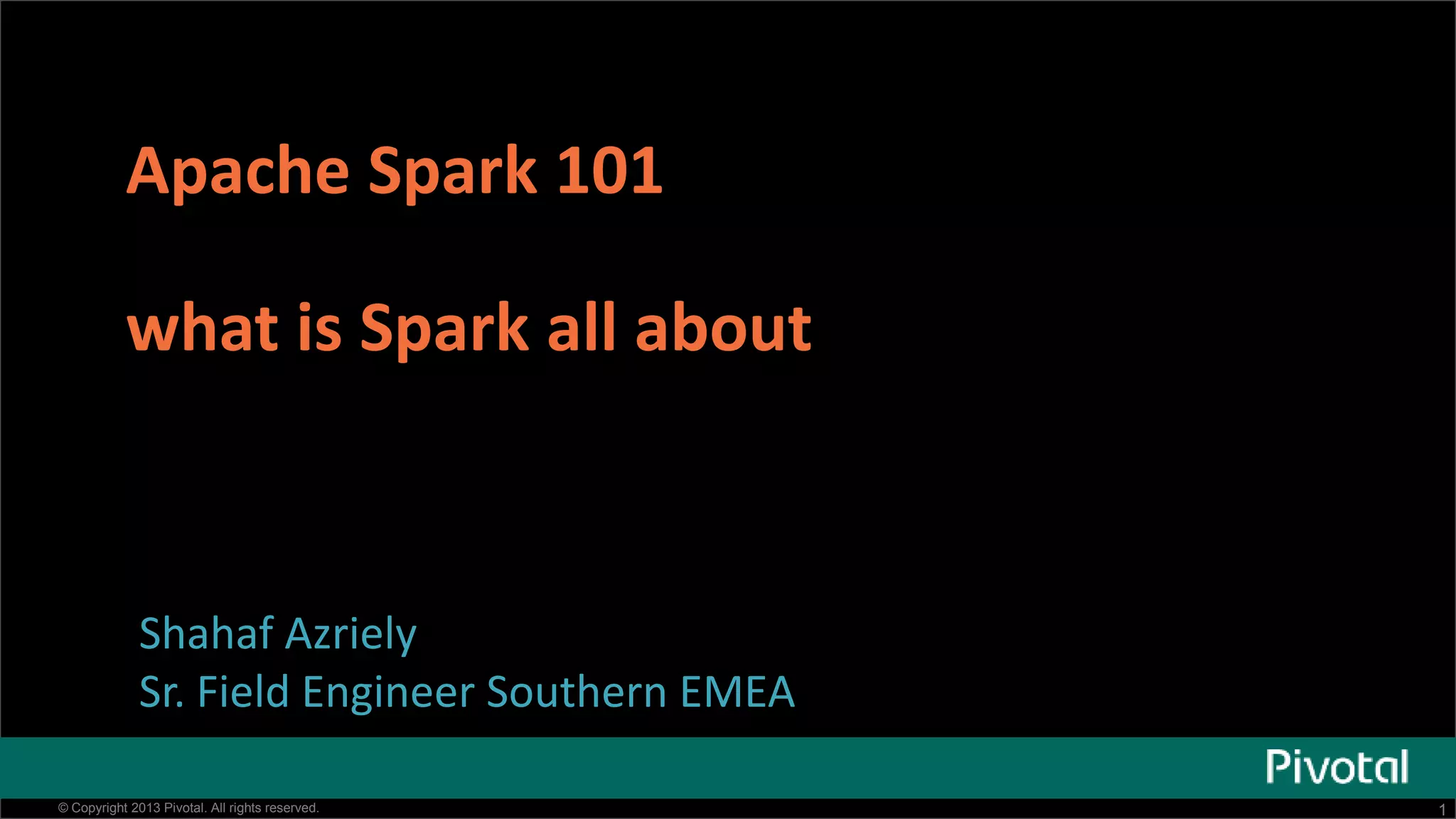 This document provides an overview of Apache Spark, including: