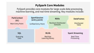 • PySpark isthe Python API for Apache Spark, designed for big data