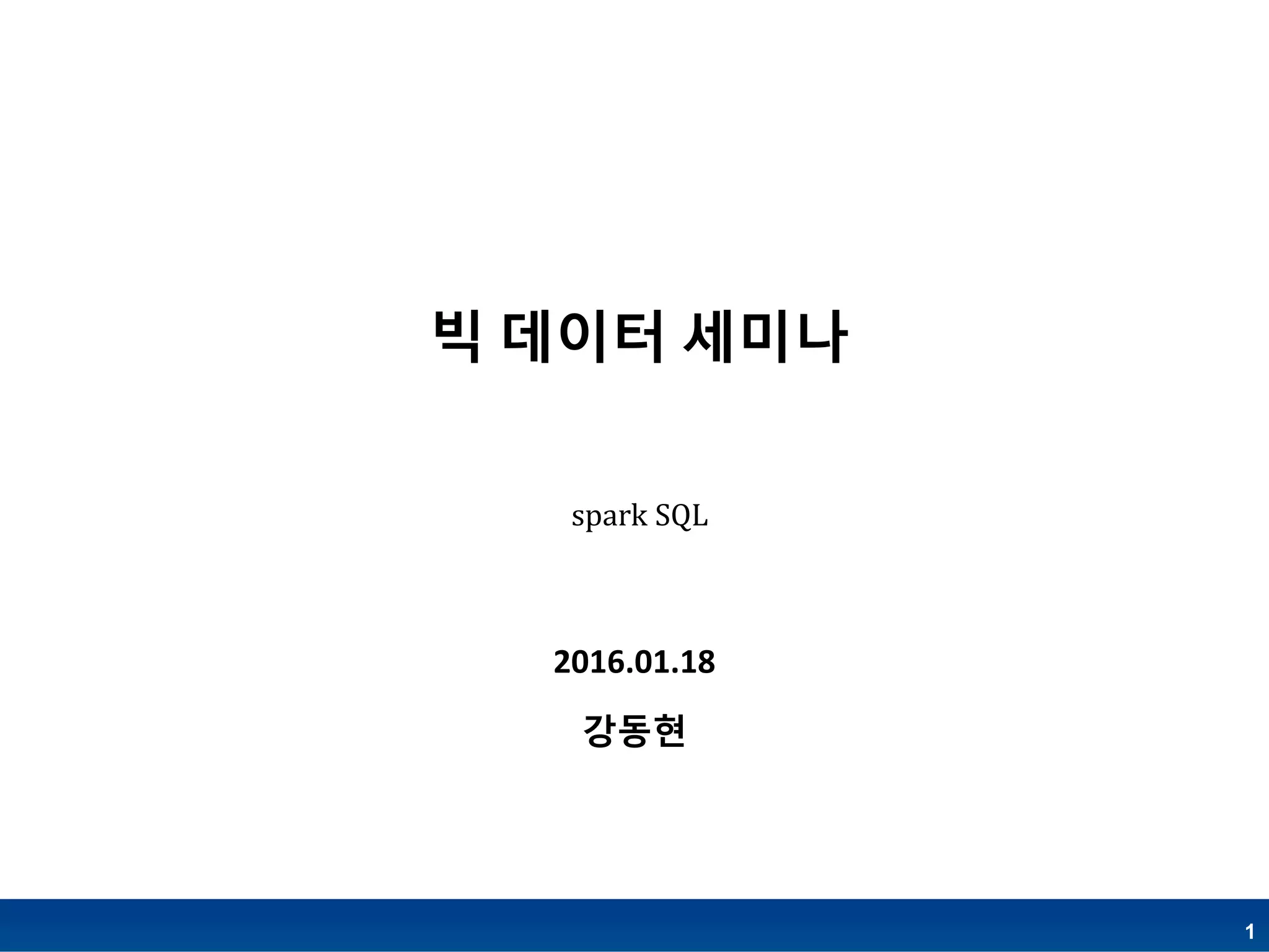 spark 1.6을 기준으로 spark sql에 대해서 개략적으로 설명한 자료입니다. 발표 자료가 친절하지 않으나 한글로 된 자료가 없길래 혹시나 도움 되시는 분들이 있을까 하여 공유합니다.