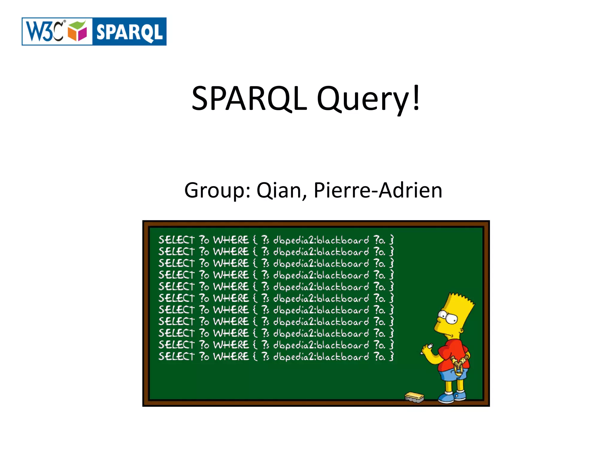 The document contains 5 SPARQL queries performed on DBpedia to retrieve information about people, locations, and solo artists. Query 1 finds all people born in Paris, Query 2 filters those born after 1970, Query 3 finds solo singers born in London, Query 4 finds people born in Brest using regex filtering, and Query 5 finds solo artists with concert tours of over 200 shows. The document also provides links to resources on querying DBpedia and using SPARQL to find Bart Simpson's blackboard gags from The Simpsons TV show, but notes this particular query was not completed within the allotted time.