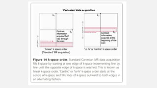 The document provides a detailed overview of spatial encoding and image formation in MRI, emphasizing the importance of understanding the image formation process for optimizing diagnostic information and recognizing image artifacts. It explains concepts such as signal formation, k-space, gradients, and the Fourier transformation involved in MRI, while discussing various encoding techniques (slice selection, phase encoding, frequency encoding) necessary for accurate imaging. Additionally, it highlights the significance of k-space in data acquisition and manipulation, crucial for generating high-resolution images in MRI.