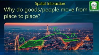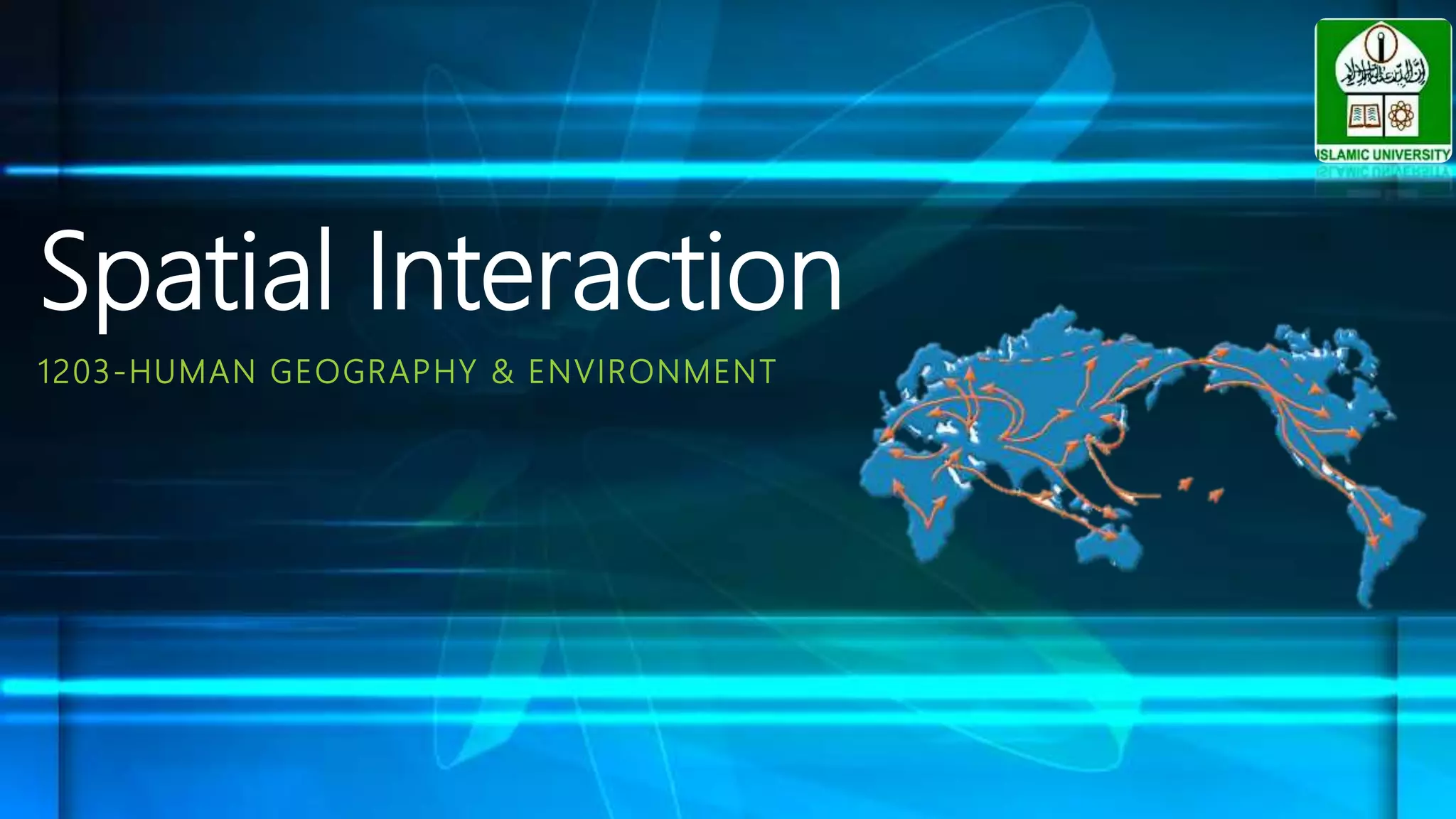 The document discusses spatial interaction in human geography, focusing on why goods and people move and the concepts of space-time compression, distance decay, and various types of spatial diffusion. It differentiates between relocation and expansion diffusion, including hierarchical, contagious, and stimulus forms. Additionally, it covers cultural processes like acculturation and assimilation in the context of cultural exchange.