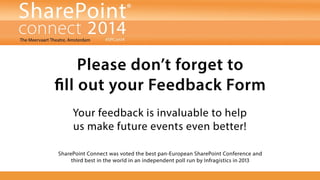 The document discusses social refiners that can be added to search experiences to filter results based on social distance. It provides examples of creating a department refiner to filter by the author's department and a "fake" refiner that filters results based on the user's social connections, like colleagues. The document demonstrates building these types of social refiners, how to retrieve social data to power them, and potential improvements like caching.