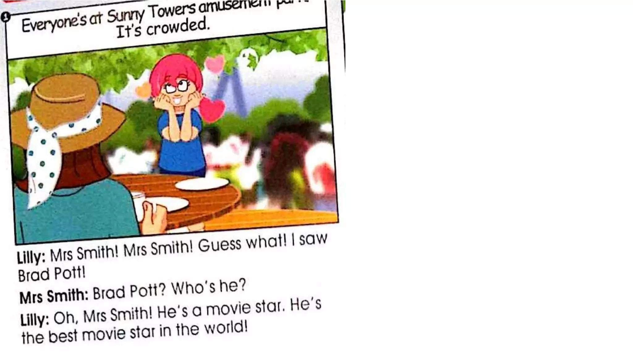This document describes the appearances of several individuals. It provides descriptions of their hair styles (straight, curly, long, short), hair colors (black, blond, brown, red, ginger, purple), eye colors (blue, brown, green, dark), and for some it notes being bald. It asks and answers questions about what various people named Mel, Kurt, Karl, Frank, Mike, Shirley, Diana, Kelly, Billie, Hermonie, and Bruce Lee look like.