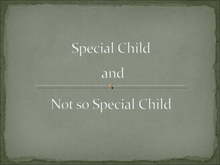 The document discusses several case studies of families coping with special needs children. It examines how factors like family beliefs, perceptions of the child, and dynamics between siblings can impact how families deal with issues like mental retardation, autism, or intellectual giftedness in some children. It also explores therapeutic interventions used in some cases including neuropsychological assessments, individual and family therapy, and enrollment in special education programs.