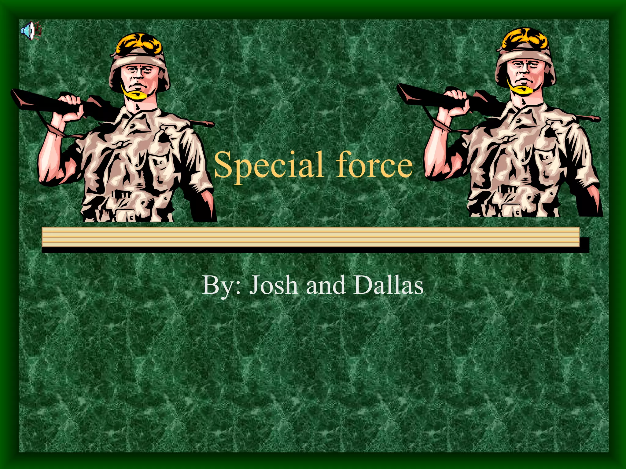 This document provides information about a career in special forces. It discusses that special forces help the military by being combat trained to go anywhere in the world. They require 72 weeks of classroom training including subjects like algebra after minimum ASVAB scores and swimming training. Special forces job sites are typically located around military bases worldwide. Employers include those related to national security and international affairs.