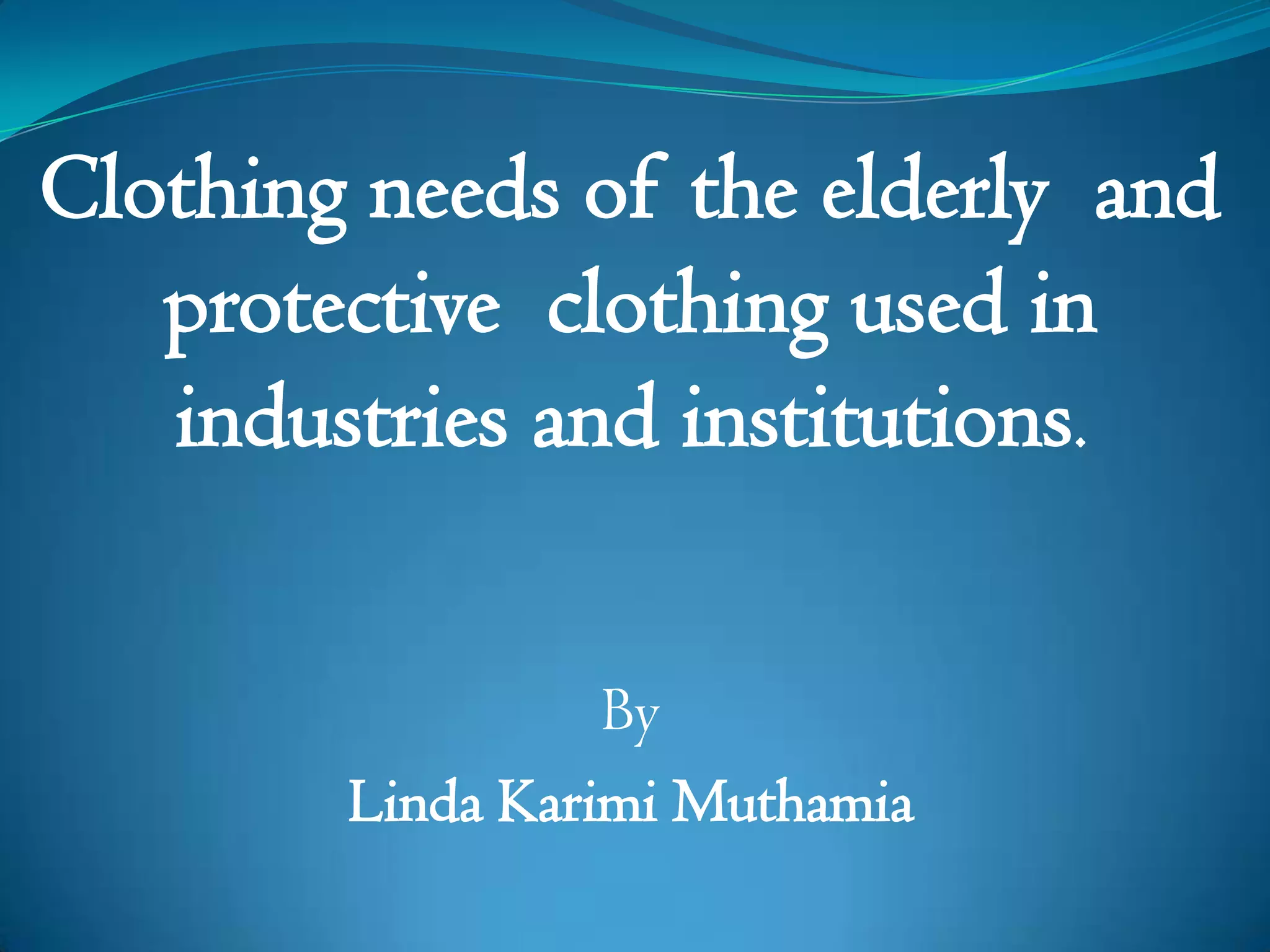 The document discusses the clothing needs of the elderly and those requiring protective clothing in various industries. It emphasizes the importance of adaptive clothing for individuals with limited mobility and specific medical conditions, detailing features such as ease of wear and comfort. Additionally, it outlines the types of protective clothing necessary for safety against various hazards in the workplace.