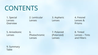 SPECIAL LENSES .pptx 1. 2. 3. 4. Special Lenses Overview