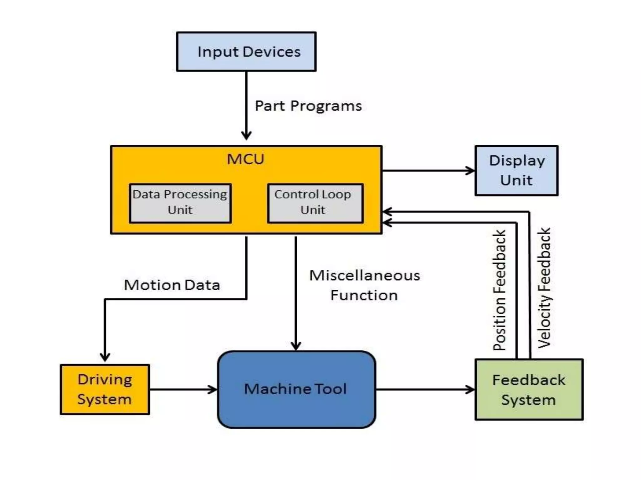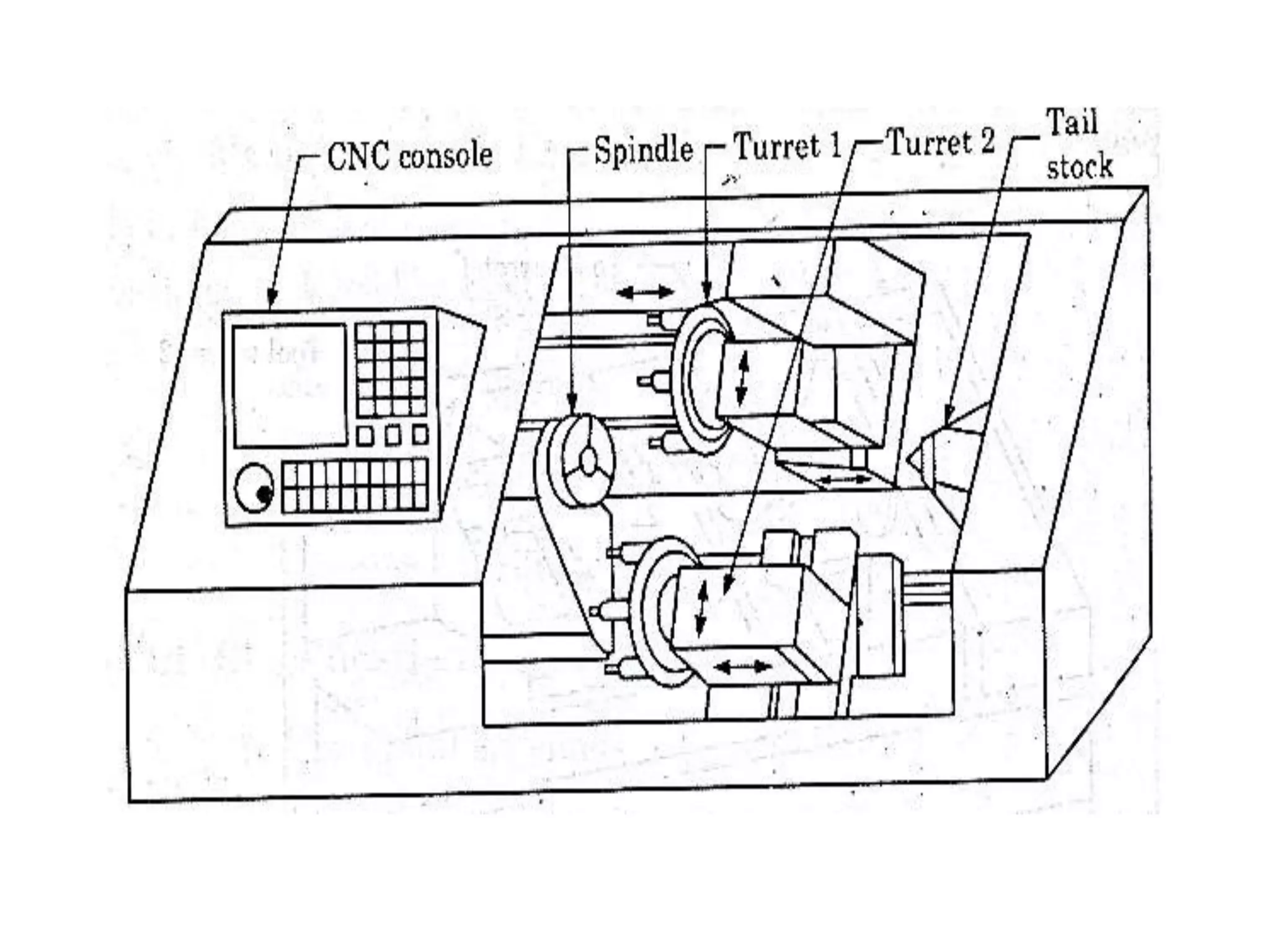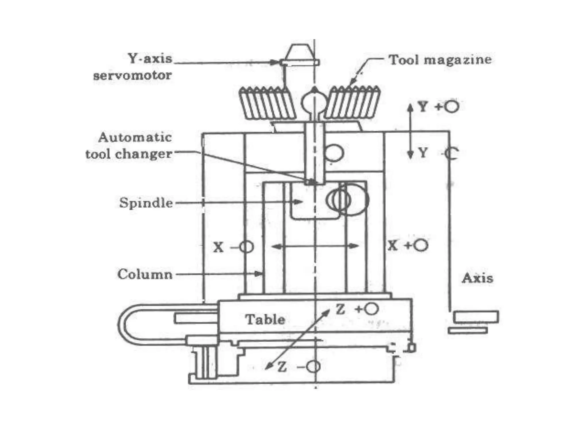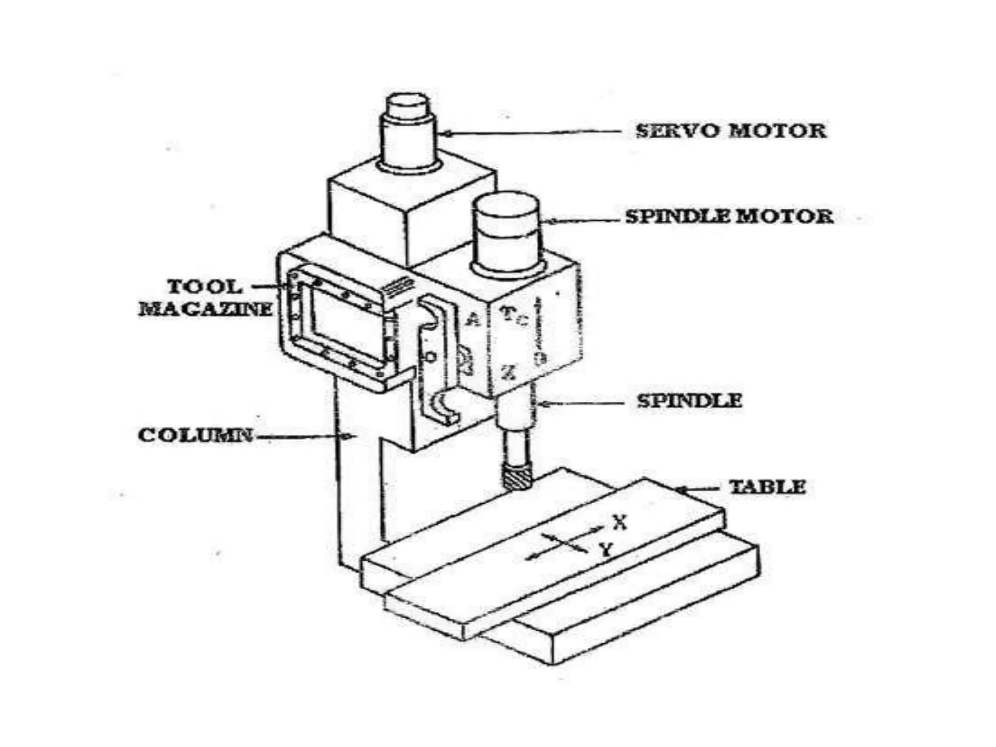 The document provides a comprehensive overview of CNC (Computer Numerical Control) machines and their components, including numerical control systems, machine control units, and various types of machining centers like horizontal and vertical machining centers. It details the functionality of CNC systems, including part programs, servo control, feedback devices, and tools such as automatic tool changers and tool magazines. Additionally, it discusses the advantages of CNC over traditional NC systems, emphasizing increased productivity, accuracy, and flexibility in machining operations.