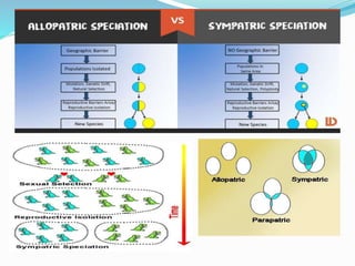 2. Sympatric speciation happens when two groups of the same species live in the same area but evolve differently until they can no longer interbreed.