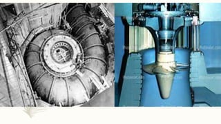 The document discusses specific speed, which is a metric used to compare different types of turbines. Specific speed is defined as the speed of a geometrically similar turbine that produces 1 unit of power under 1 unit of head. The specific speed ranges are provided for common turbine types: Pelton wheel turbines have a specific speed of 80-50, Francis turbines range from 50-250, and Kaplan turbines have the highest specific speed range of 250-850. Specific speed is one factor used to select the appropriate turbine type for installation based on factors like head, part load operations, number of units, cost, and more. Turbines are also classified as having high, medium, or low specific speeds based on these defined ranges.