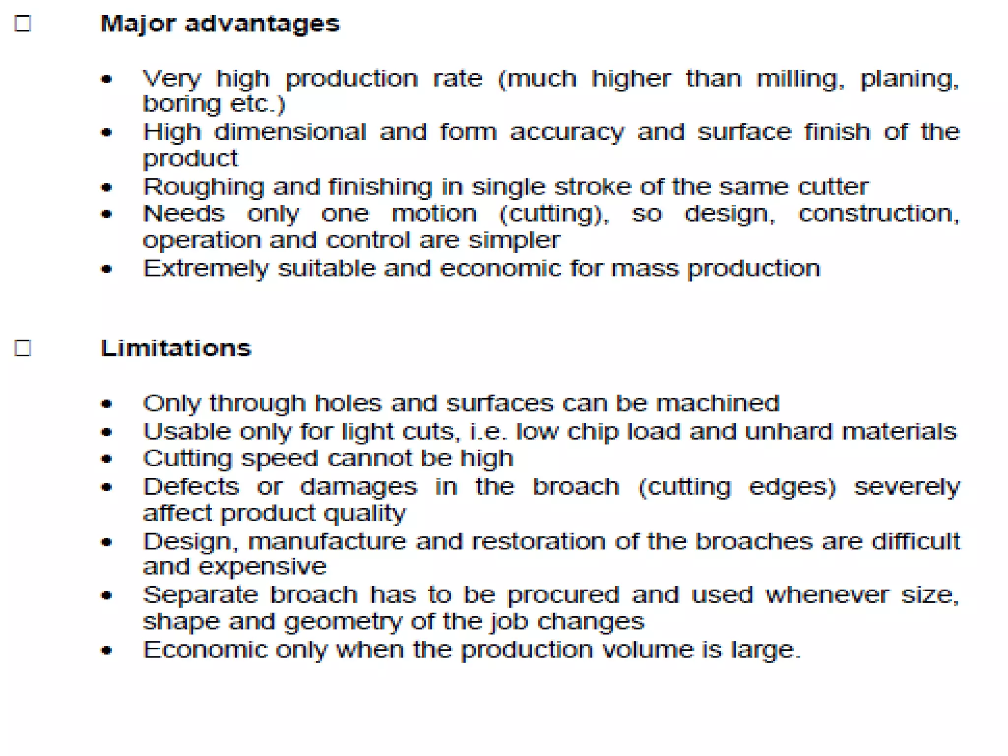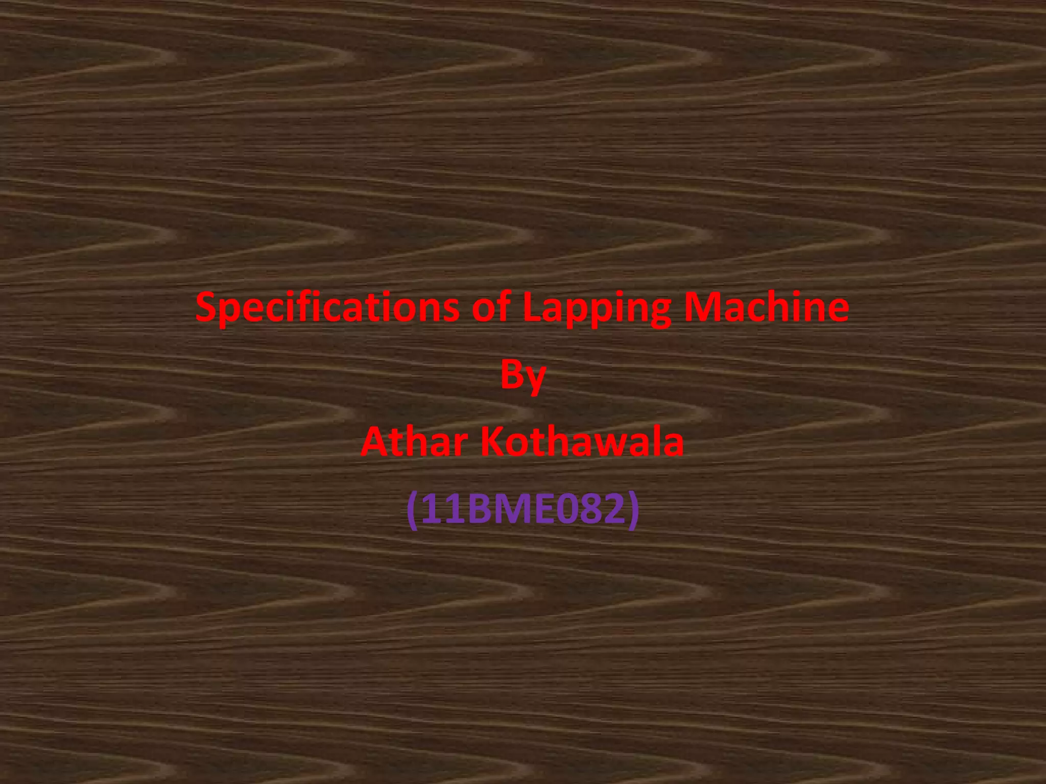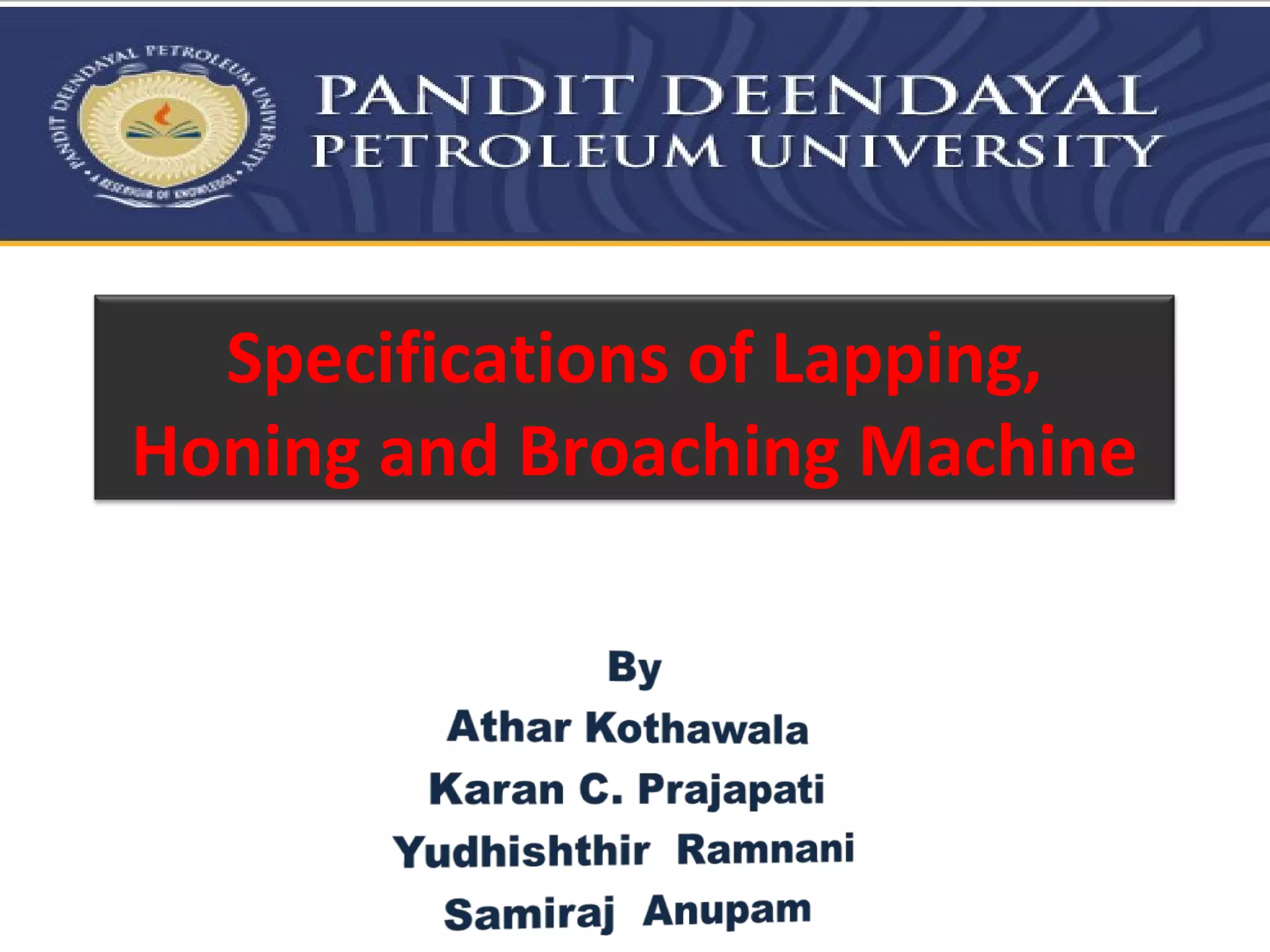 The document details the specifications and operations of various machining processes, including lapping, honing, and broaching. It explains the methods and machinery involved in lapping for polishing surfaces, honing for improving accuracy and finish, and broaching for material removal in a single stroke. It also provides specifications for different types of machines and their applications in various industrial contexts.