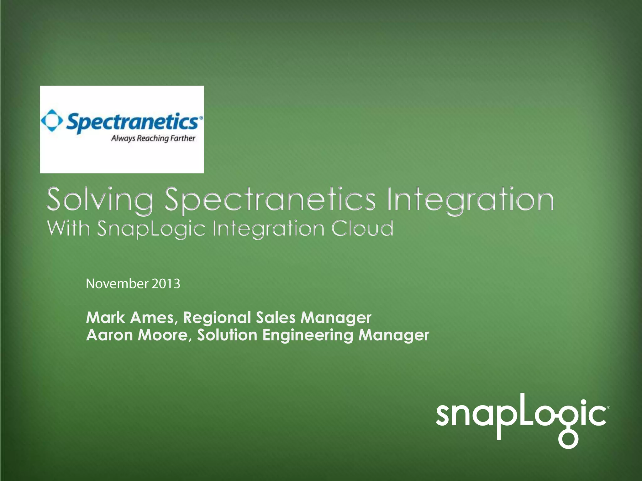 The document discusses Spectranetics' requirements to automate their order process from Oracle to Salesforce to eliminate manual efforts. It outlines their current state of manual data transfer between systems and data sources. The SnapLogic overview and demo then shows how SnapLogic Integration Cloud can help meet Spectranetics' needs by providing pre-built integrations, speeding up their January deadline, and allowing for integration without hand coding. Key features of SnapLogic discussed include pre-built connectors, easy visual workflow building, scalability, and support for both on-premise and cloud applications and data.