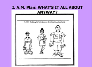 1. The difference between accommodations and modifications for students with IEPs. Accommodations change how students access or demonstrate learning but do not alter the standards, while modifications fundamentally change standards.