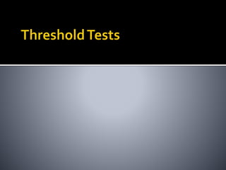 This document provides guidance on performing speech audiometry tests, including speech reception threshold (SRT), word recognition score (WRS), and speech-in-noise tests. It discusses procedures for determining SRT and WRS, considerations for non-native English speakers and those with hearing loss, and the clinical significance of test results including how they can indicate site of lesion. Masking procedures are also outlined to limit interference between ears during testing.