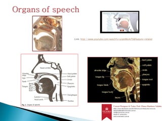 The document outlines the processes of sound production, transmission, and reception, focusing on articulatory and auditory criteria for both consonants and vowels. It details the various classifications of consonants based on voicing, airstream mechanisms, and places and manners of articulation, alongside the cardinal vowel system established by Daniel Jones. The document also discusses the International Phonetic Alphabet (IPA) as a systematic representation of these articulatory properties.