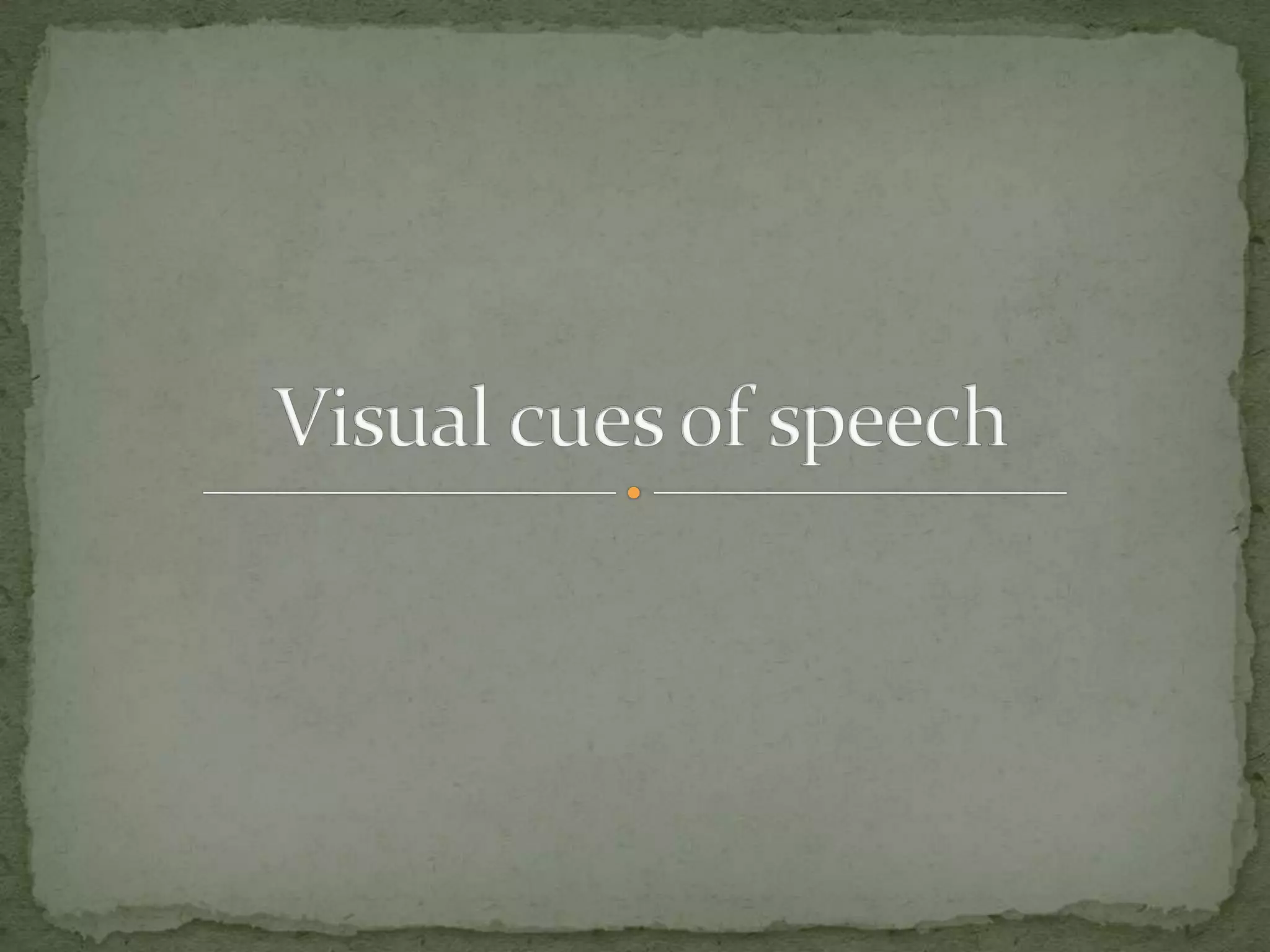 (1) When both auditory and visual information is available, individuals with hearing loss tend to do better on communication tasks. (2) By 5 months of age, infants already attend to visual speech cues, preferring synchronous facial and speech movements. (3) Training children in speechreading may enhance their understanding in noisy situations by releasing masking and allowing them to make use of visual speech cues.