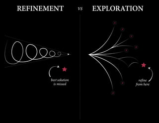 The document outlines the Speed Design Studio, a collaborative design process developed by Jabe Bloom and Will Evans, focused on rapid iterations to address design problems through generative ideation and prototyping. It emphasizes the importance of empirical research and utilizes a structured charrette format for brainstorming and critique to improve design concepts. It also addresses the challenges faced by knowledge workers in showcasing their skills effectively to potential employers.