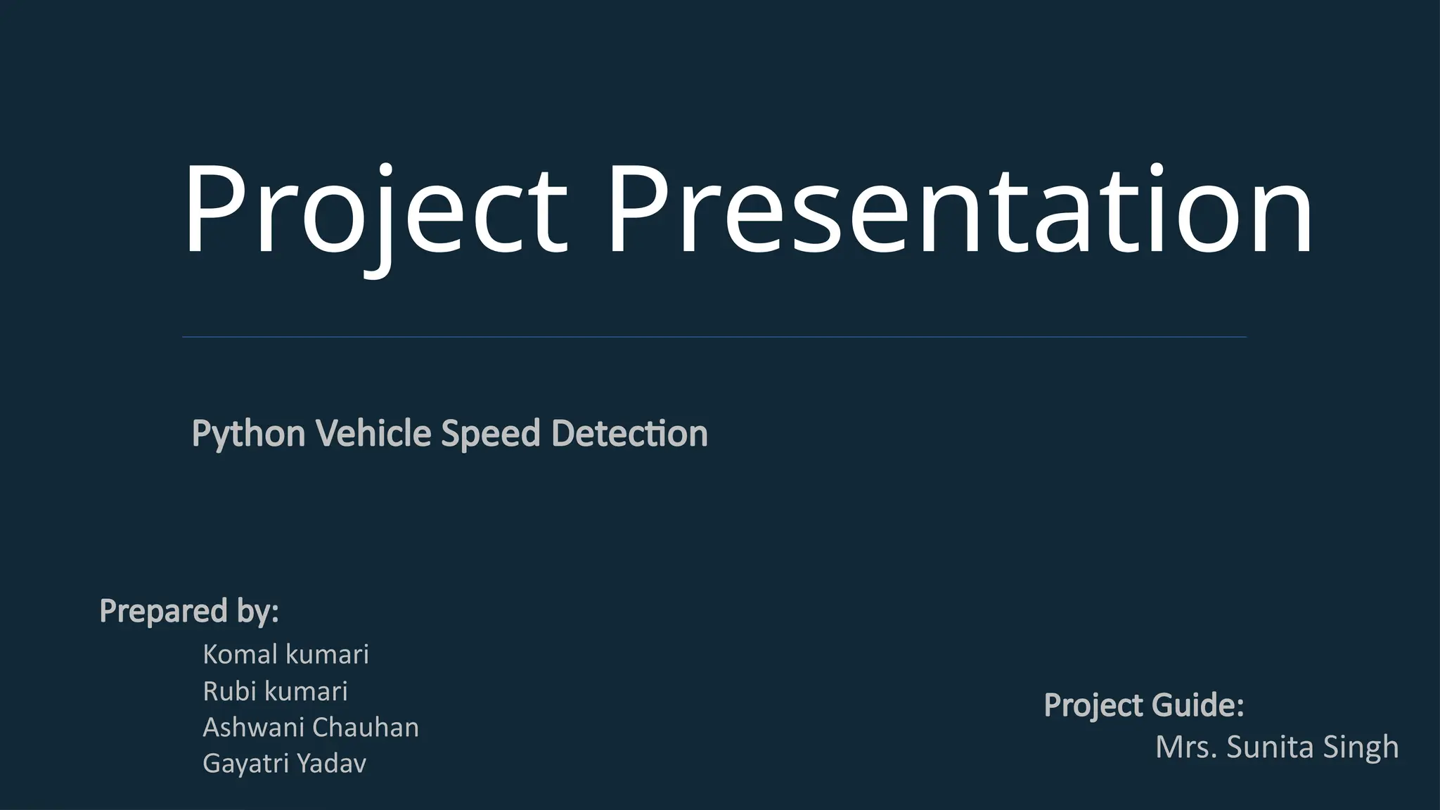 The document outlines a vehicle speed detection project utilizing Python and libraries like OpenCV, Pandas, Ultralyics, and NumPy for video analysis and object tracking. The implementation achieves a 95% accuracy rate and processes video data at five times the speed of traditional methods. Future improvements aim to enhance real-time performance and incorporate advanced data analysis techniques.