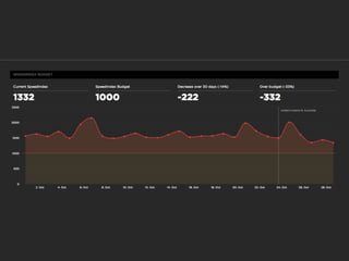 This document discusses the importance of website speed and performance. It notes that most top retail sites take over 3 seconds to load critical content, and median page load times have slowed by 23% year-over-year. Faster sites see benefits like 10% higher conversions. Network latency has a greater impact on performance than bandwidth. Techniques like preloading fonts and images can help mitigate latency. Frameworks and features like service workers may also help if designed deliberately for performance. Regular measurement and setting performance budgets are recommended to build fast user experiences.