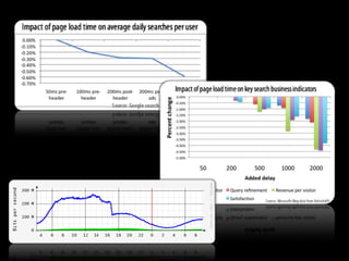 The document discusses the importance of frontend website performance. It provides examples showing that speeding up websites by even small amounts, such as 0.4 seconds, can significantly increase metrics like search traffic, revenue, and reduce bandwidth usage. The document recommends techniques for improving performance like concatenating files, minifying files, using content delivery networks, browser caching, and reducing redundant content. It also discusses tools for analyzing website performance.