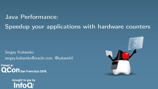 The document discusses Java performance optimization using hardware counters, focusing on techniques for monitoring and profiling to identify performance bottlenecks. It highlights the importance of methodologies such as a top-down approach to system monitoring and understanding CPU utilization. Additionally, it outlines the role of Performance Monitoring Units (PMUs) and hardware counters in analyzing application performance for better optimization strategies.