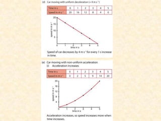2. Graphs of distance-time and velocity-time are introduced and it is explained that their slopes provide speed and acceleration respectively.