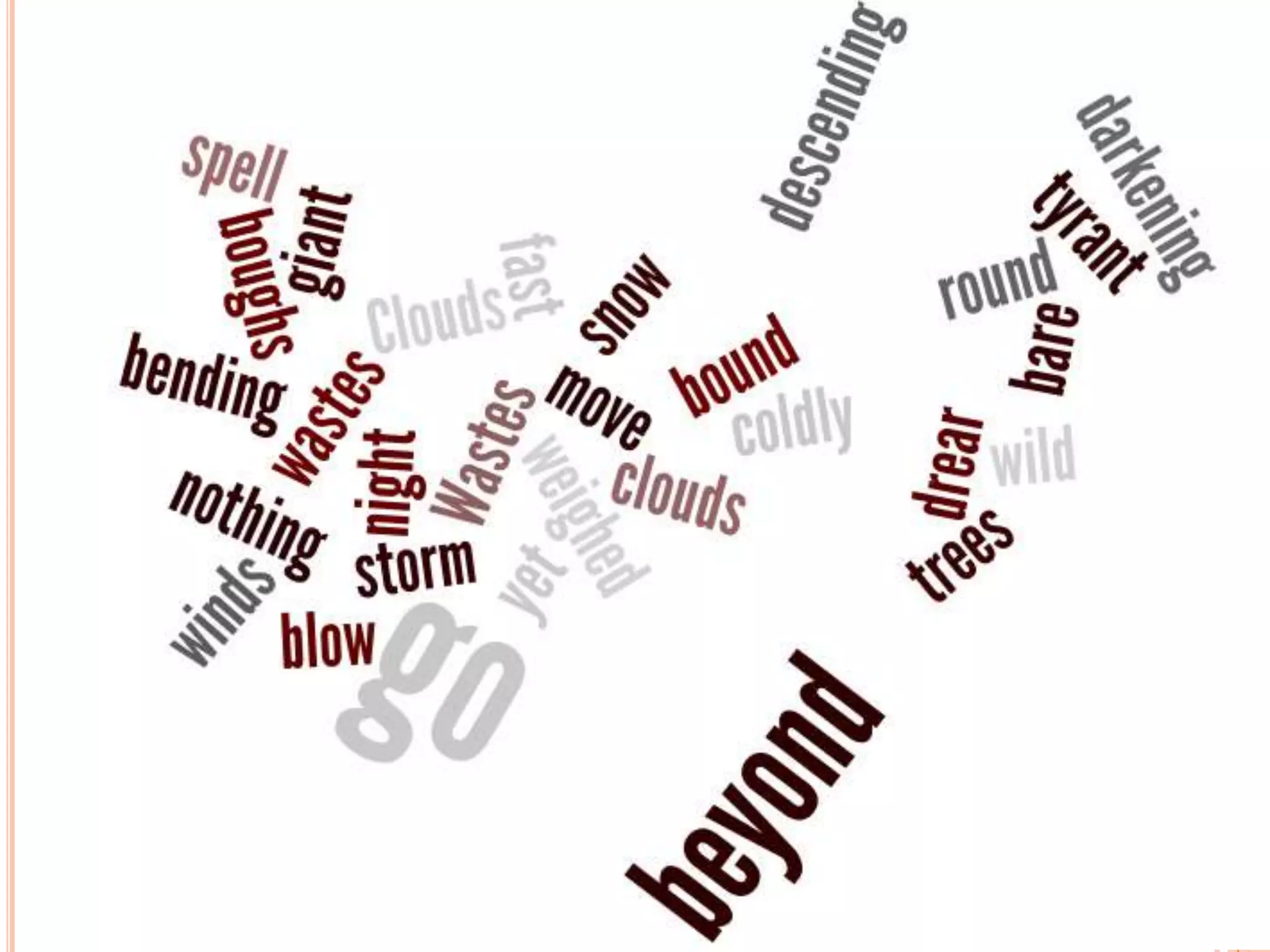 This document provides teaching materials for analyzing the poem "Spellbound" by Emily Brontë. It includes discussion questions about the title, setting, characters, and themes presented in each stanza. Background information is provided that the poem was written when Brontë was 19 and refers to an incident from her imaginary world of Gondal where a mother exposes her child to die in winter but cannot look away due to her maternal emotions. Students are prompted to identify phonological techniques like alliteration and assonance used in the poem.
