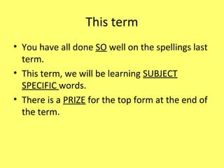 This document provides spelling and vocabulary words related to math for a weekly spelling challenge, along with their definitions and examples of use in sentences. There are 10 math-related words to be learned for the week, including graph, ratio, rotation, pyramid, calculator, algebra, cylinder, protractor, compass, and trigonometry. Students are encouraged to use the new words in their lessons that week and help their peers achieve a score of 10/10 on the weekly spelling challenge.