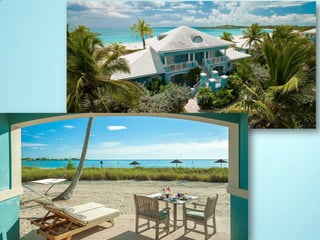 This document provides information about travel packages and amenities at an all-inclusive luxury resort in the Exumas, Bahamas. Key details include:
