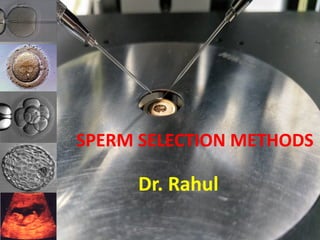 The document discusses various sperm selection methods and their impacts on embryo development and fertility outcomes. It evaluates semen examination, sperm morphology, and advanced selection techniques like IMSI and PICS techniques for improving assisted reproductive technology results. It highlights that proper sperm selection criteria and assessments are vital for enhancing fertilization rates while suggesting that more comprehensive studies are needed to further validate these methods.