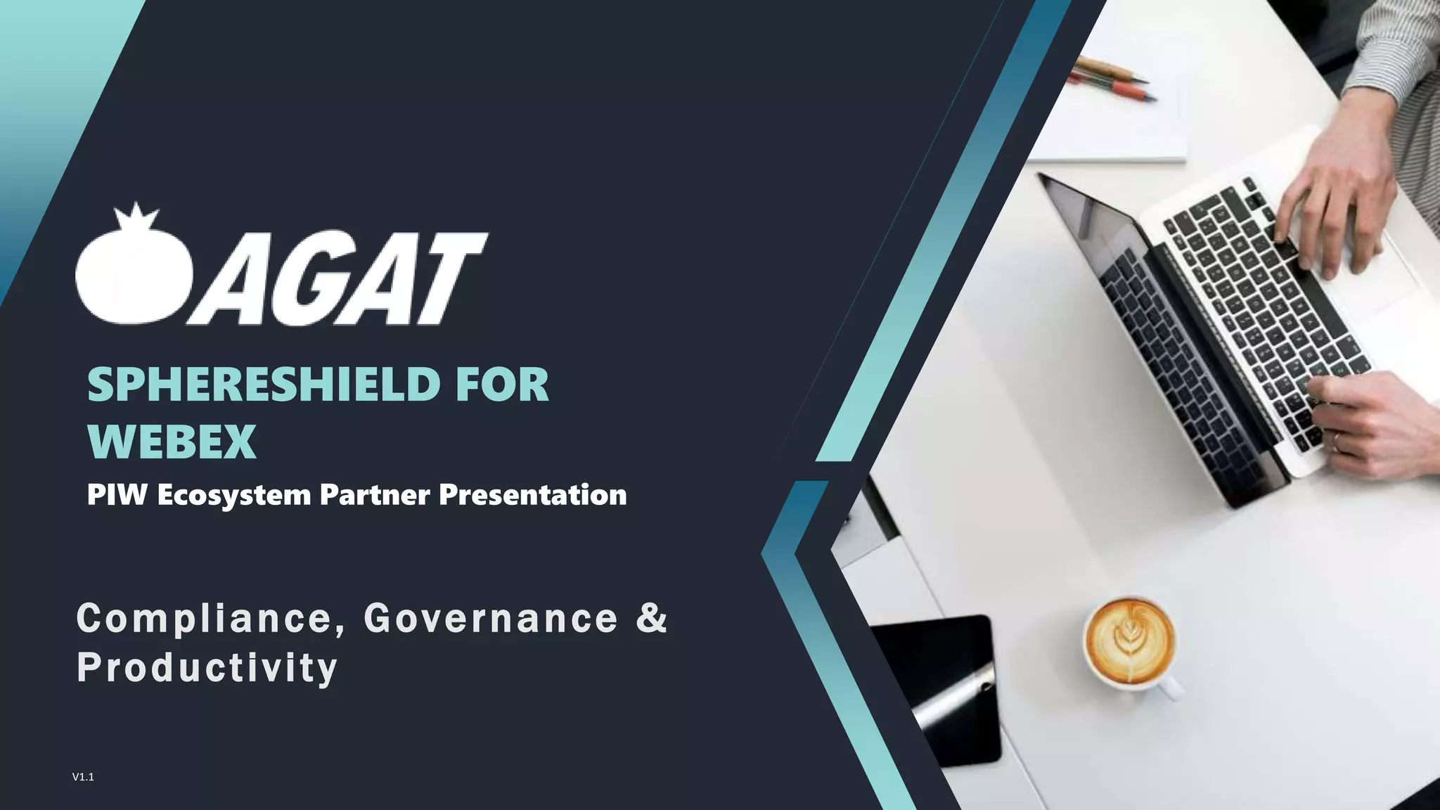 This document provides an overview of SphereShield, a software solution from AGAT Software that provides governance, compliance, and productivity features for Webex. Some key capabilities mentioned include: