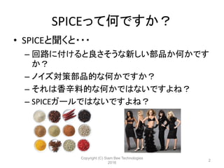 ノイズ対策部品的な何かですか? – それは香辛料的な何かではないですよね? – SPICEガールではないですよね? Copyright (C) Siam Bee Technologies 2016 2