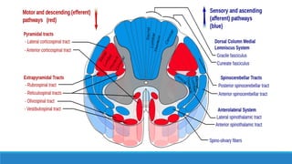 Spinal cord injury (SCI) refers to traumatic damage to the spinal cord affecting sensory and motor signal transmission, classified into complete and incomplete injuries. Common causes of SCI include traffic accidents, falls, and sports injuries, with symptoms ranging from paralysis to chronic pain and complications like neurogenic bladder or bowel dysfunction. The document details the anatomy of the spinal cord, types of injuries, pathophysiology, clinical features, and potential complications following an SCI.