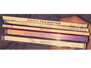 1) The first spine design for a Rihanna album features her name in bold red letters and the album name in black to distinguish the two. It also includes the Def Jam record label logo.