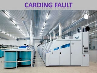 This document provides information about various yarn defects seen in ring spinning, their causes, effects, and methods for rectification. It describes 18 different types of defects like slubs, neps, thin places, kinks, thick places, etc. For each defect, it mentions the potential effects on subsequent processes and the fabric, likely causes related to machine settings or raw material issues, and recommended actions to address the problem. The goal is to help spinning mill staff properly identify and troubleshoot quality issues.