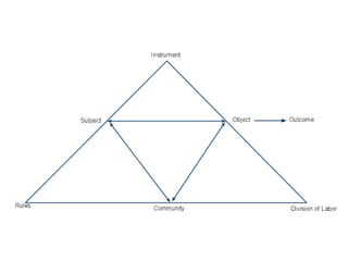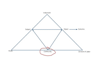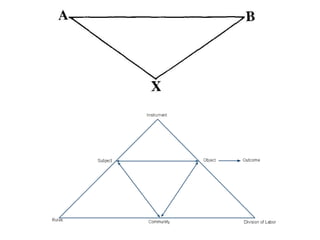 Activity theory and actor-network theory provide different perspectives for theorizing networks. Activity theory views development as preceding political interests, focusing on activity structures and contradictions over time. Actor-network theory sees political interests as preceding development, emphasizing negotiation and translations in network compositions. Both see networks as heterogeneous, multi-linked, and transformative, but differ in concepts like mediation and whether change is developmental or political. Each can be applied to analyze social media networks.
