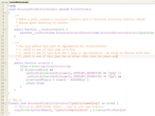 The document discusses the Standard PHP Library (SPL) which provides common data structures and interfaces in PHP. It describes various iterator interfaces and classes that can be used to iterate over data in a consistent manner. These include interfaces like Iterator and classes like RecursiveIteratorIterator, FilterIterator, ArrayIterator, DirectoryIterator, and SplFileInfo. It also discusses other SPL components like exceptions, autoloading functions, and data structures.