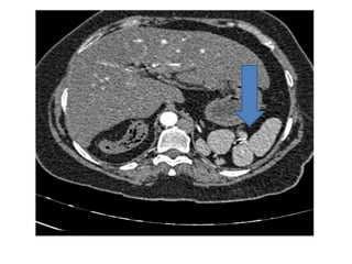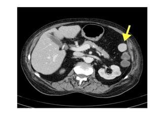 The spleen is located in the left upper quadrant of the abdomen. It filters blood and fights infections. The spleen develops from embryonic tissue and is supplied by the splenic artery and drained by the splenic vein. It can vary in size and shape. Accessory spleens are common. Injuries from trauma are most often seen in the spleen. Conditions like infections, cancers, blood disorders can cause abnormalities. Imaging with ultrasound, CT scan, MRI and nuclear medicine scans are used to evaluate the spleen.
